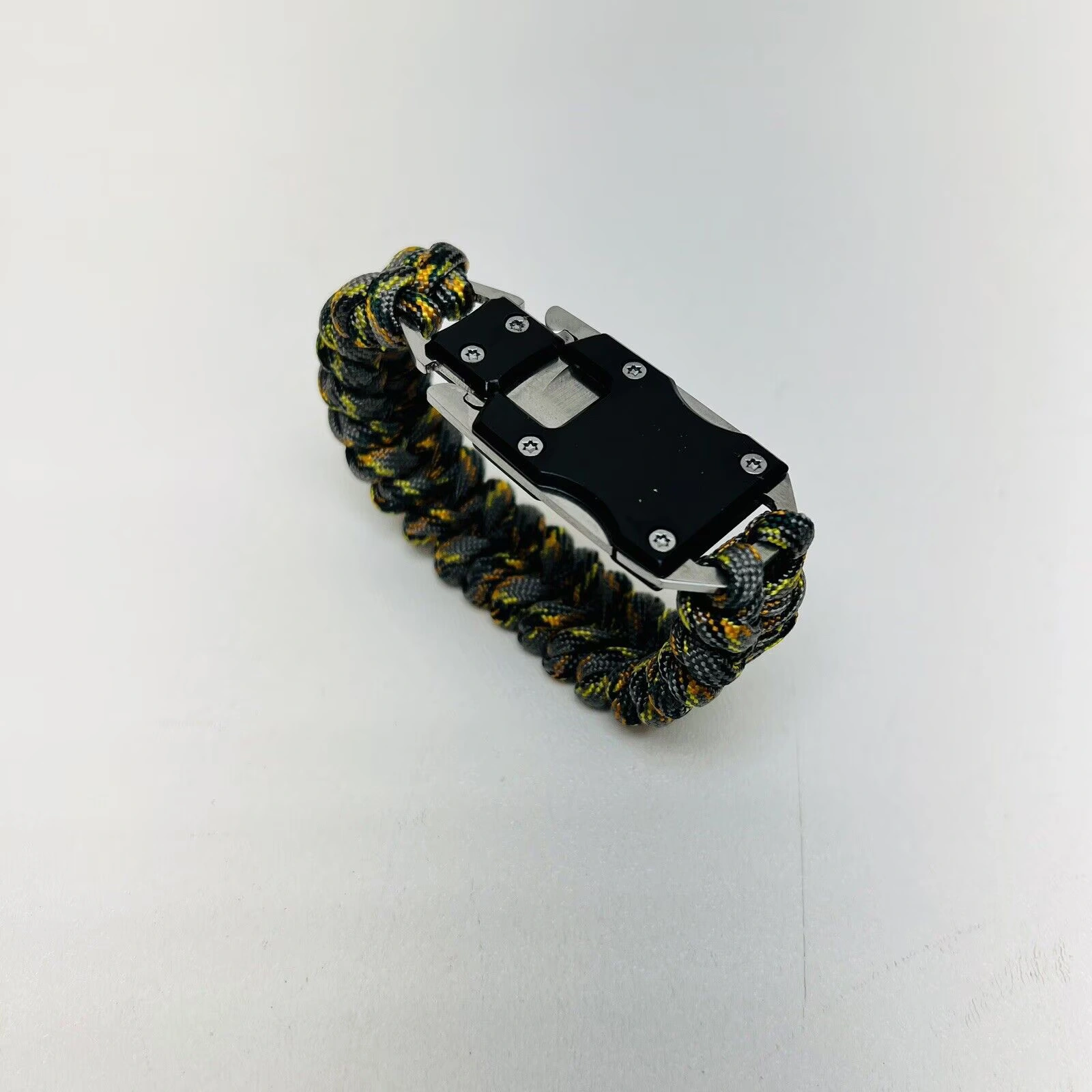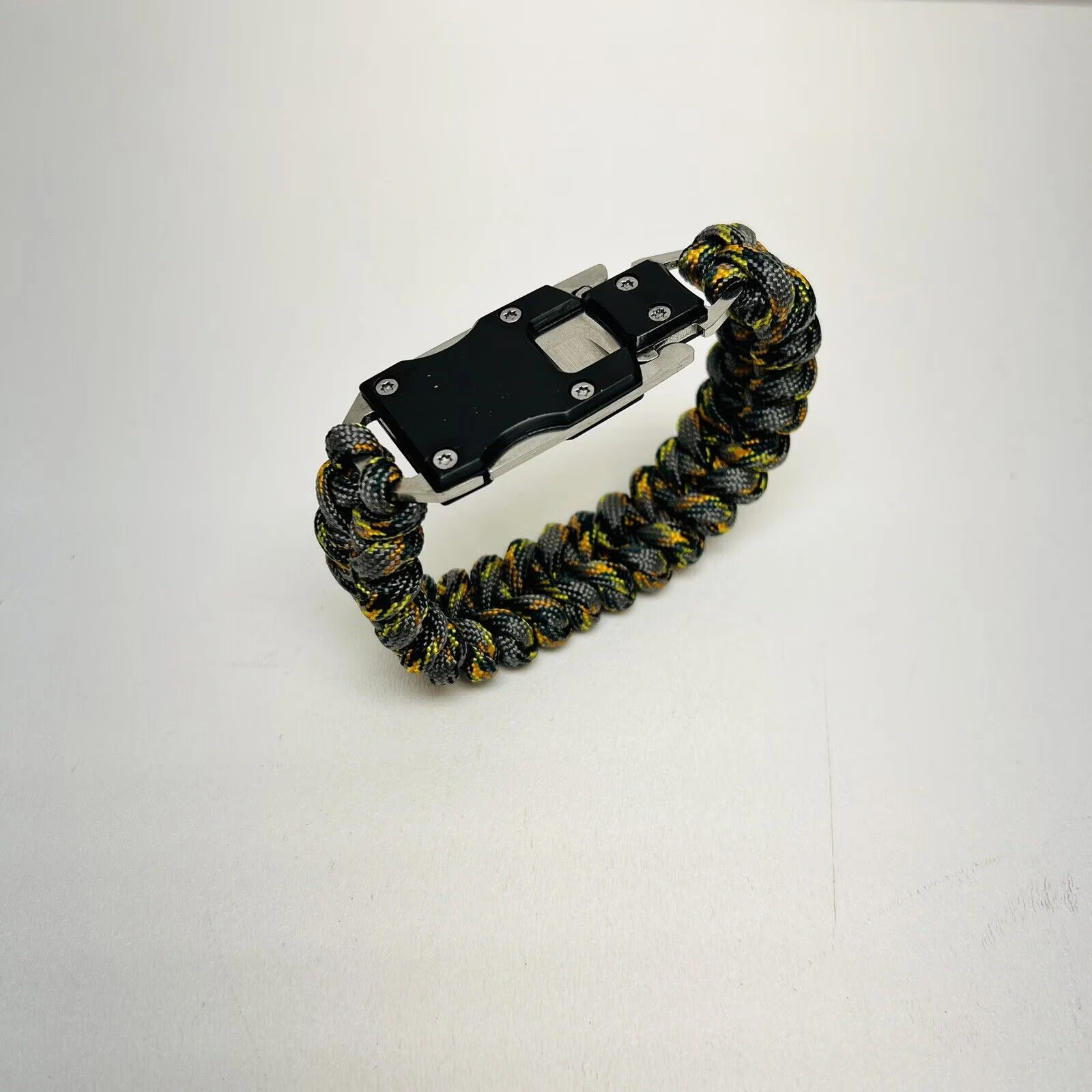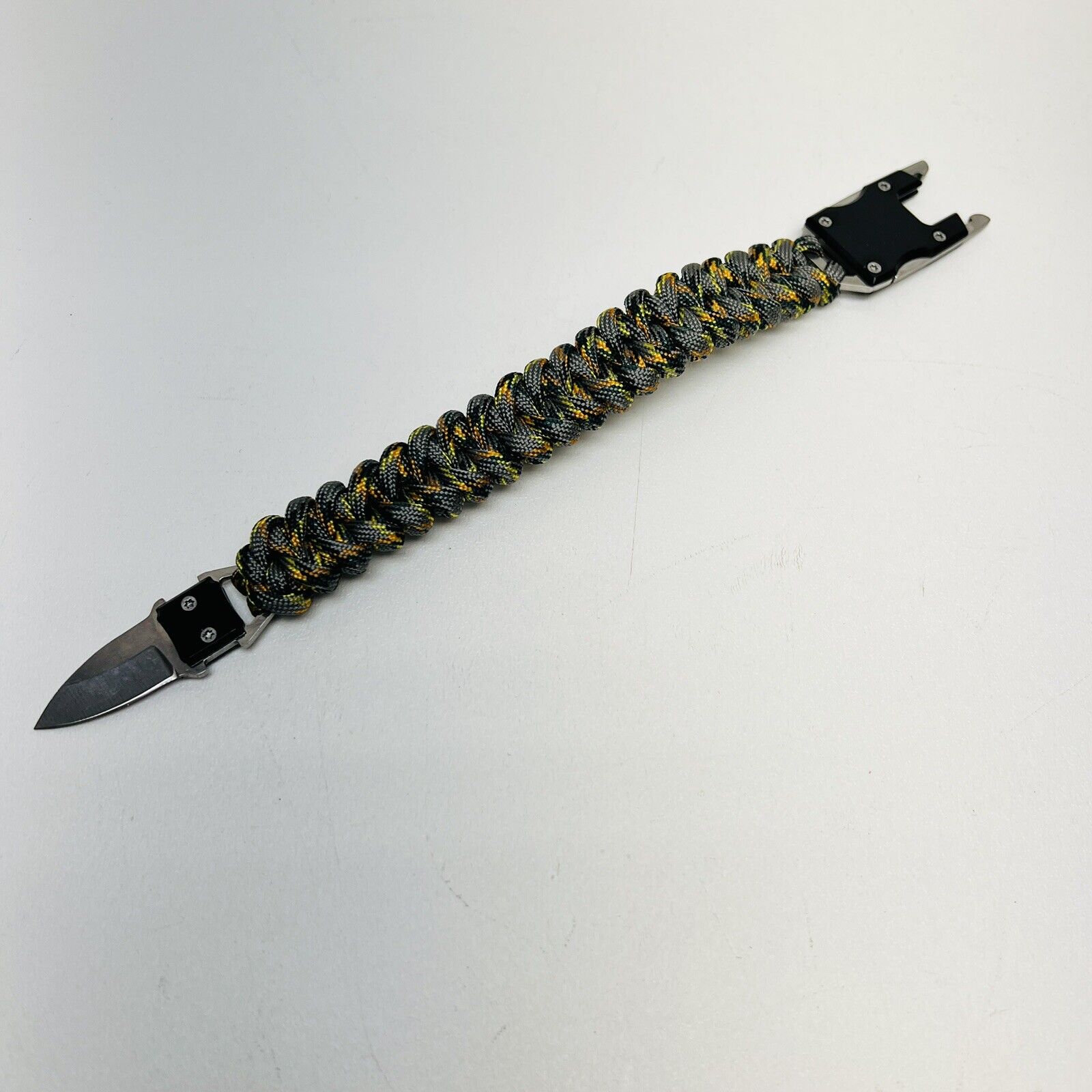Aceasta bratara fantastica de supravietuire este tesuta dintr-un material militar special foarte rezistent. Fiecare bratara este echipata cu o inchidere metalica cu un mini cutit cu lama de otel. Bratara poate fi derulata in situatii de supravietuire.