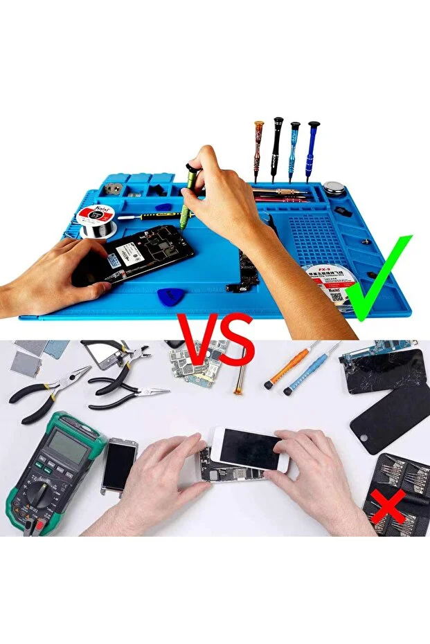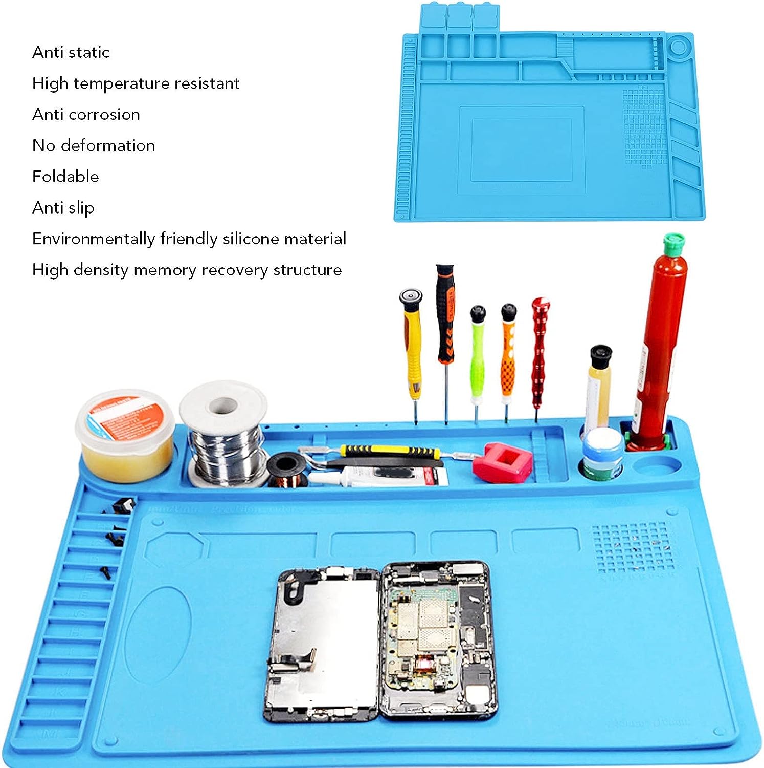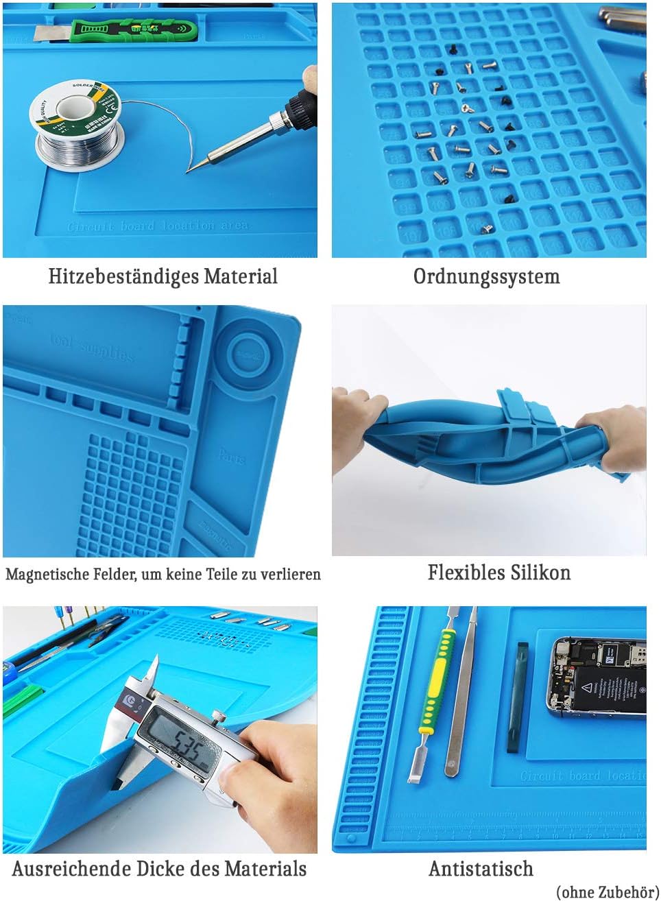 Acest produs este un covoras de serviciu multifunctional, antistatic din silicon. Un must-have pentru fiecare amator si pasionat de bricolaj. Faciliteaza foarte mult toate reparatiile si lipirea electronicelor.