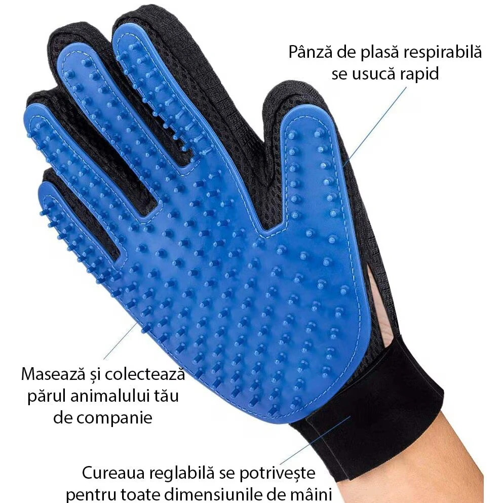 Multifunctionala: Manusa de ingrijire poate fi folosita ca manusa de baie, manusa de masaj, manusa de ingrijire, pieptene sau perie pentru cai, caini, pisici sau alte rase. Proiectata astfel incat sa fie extrem de blanda cu animalul tau de companie, fara sa ii raneasca pielea, va aduce doar satisfactie si placere. Animalul tau le va adora!